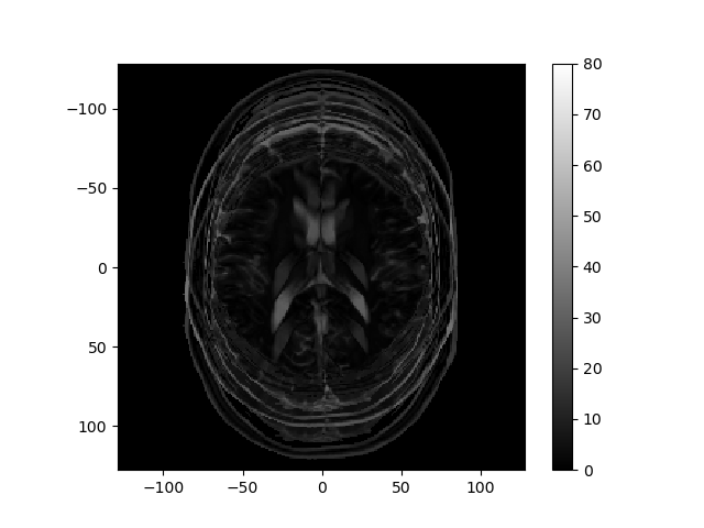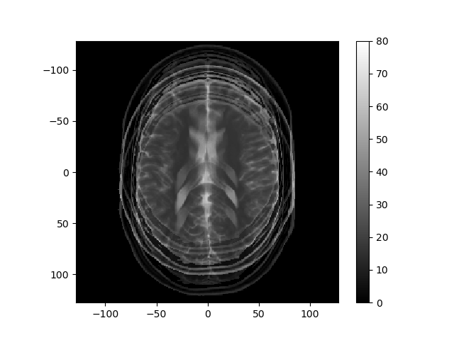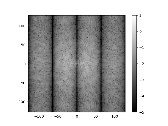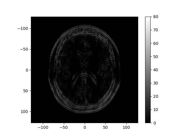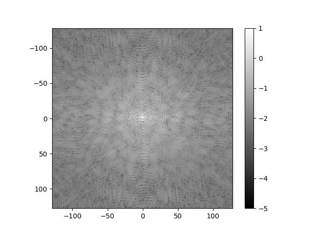 Plotted below is the absolute value of the k-space data (left) from an MRI and the absolute value of the reconstructed image (right).