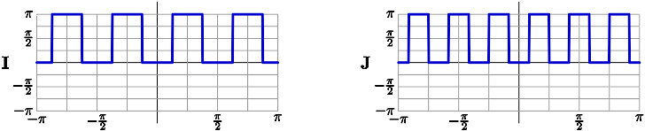 Below, we plot the angles of the DTFT of some signal x[\cdot]. The following plot shows \angle X(\Omega) as a function of \Omega, for -\pi < \Omega < \pi: