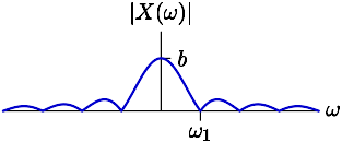 This function has a Fourier transform given by X(\cdot). A portion of the magnitude of the Fourier transform is shown below: