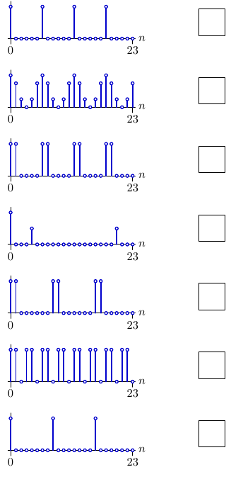 Each of the seven plots below shows the first 24 samples of a discrete-time signal.