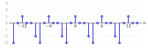 Let x[n] represent a periodic, discrete-time signal with a period of 6, a portion of which is shown below:
